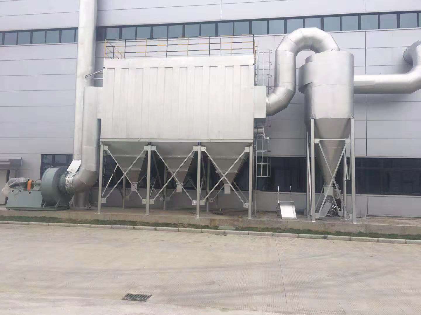 3.細(xì)微粉塵經(jīng)過脈沖袋式除塵器系統(tǒng)被;潔凈空氣自引風(fēng)機(jī)出口排放至室外;